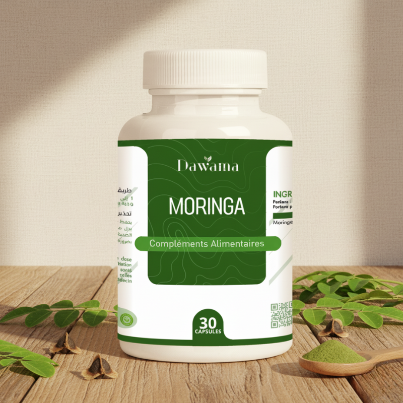 وصف: مكمل غذائي يحتوي على مسحوق المورينغا الطبيعي، ويعزز الصحة العامة، ويغني الجسم بالعناصر الغذائية الأساسية.